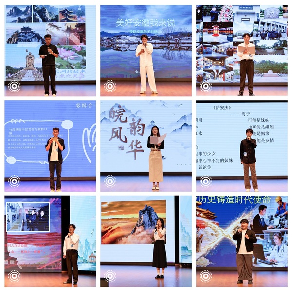 本次“青春安徽宣传员”校级初赛,为我校学子搭建了展示自我、传播文化的舞台。它以青春视角激活了安徽文化的多元魅力,让更多大学生在参与中增强了对安徽历史文化与发展成就的认同。校团委将以此次赛事为契机,持续挖掘学生中的文化传播力量,推荐优秀选手参与更高层级赛事,引导广大青年学子积极担当安徽文化的传播者与弘扬者,用青春之声讲述新时代的安徽故事,为建设繁荣兴盛的文化强省注入源源不断的青春动能。(文稿:潘仁康、黄亚茹 图片:汪张俊 审稿:冯 丰、王 婷)